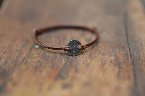 ~ Czech glass beads, locally sourced leather, brass (stamped charm)