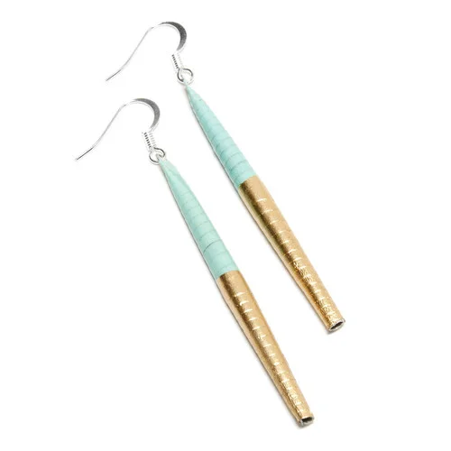 I think these rolled magazine rod earrings are truly stunning. The craftsmanship is perfect...I can't believe these are made from rolled magazine paper. Clever artistry and design. Totally stunning, absolutely chic!
