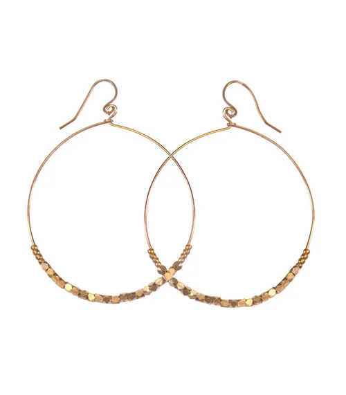 Exciting, eye-catching, ear candy: classic gold shimmering hoop earrings. Strung with metallic faceted beads...perfectly wearable day or night.