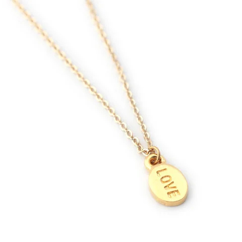 Hangs on an elegant 18" gold plated chain. And also available with the words "GIVE" and "FEED"...